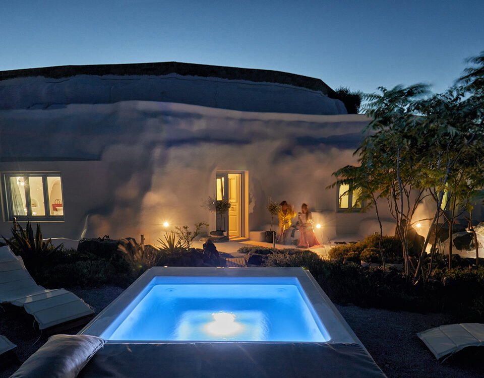 The AMANITA CAVE VILLAS is a fully renovated shallow house that combines the traditional architecture with the comforts that every holidaymaker seeks. We meet it in the village of Vourvoulos, between Imerovigli and Fira and it is built on an estate located at the highest point of a hill where you will enjoy the east and the endless view to Pyrgos and the neighboring Anafi.