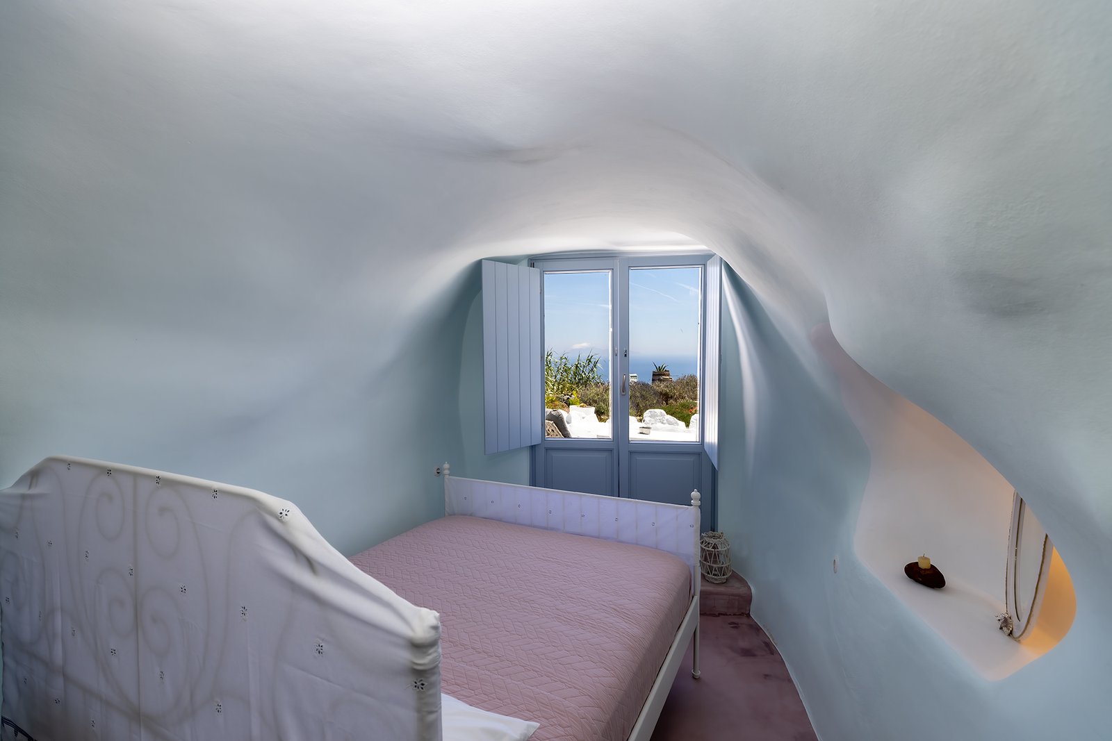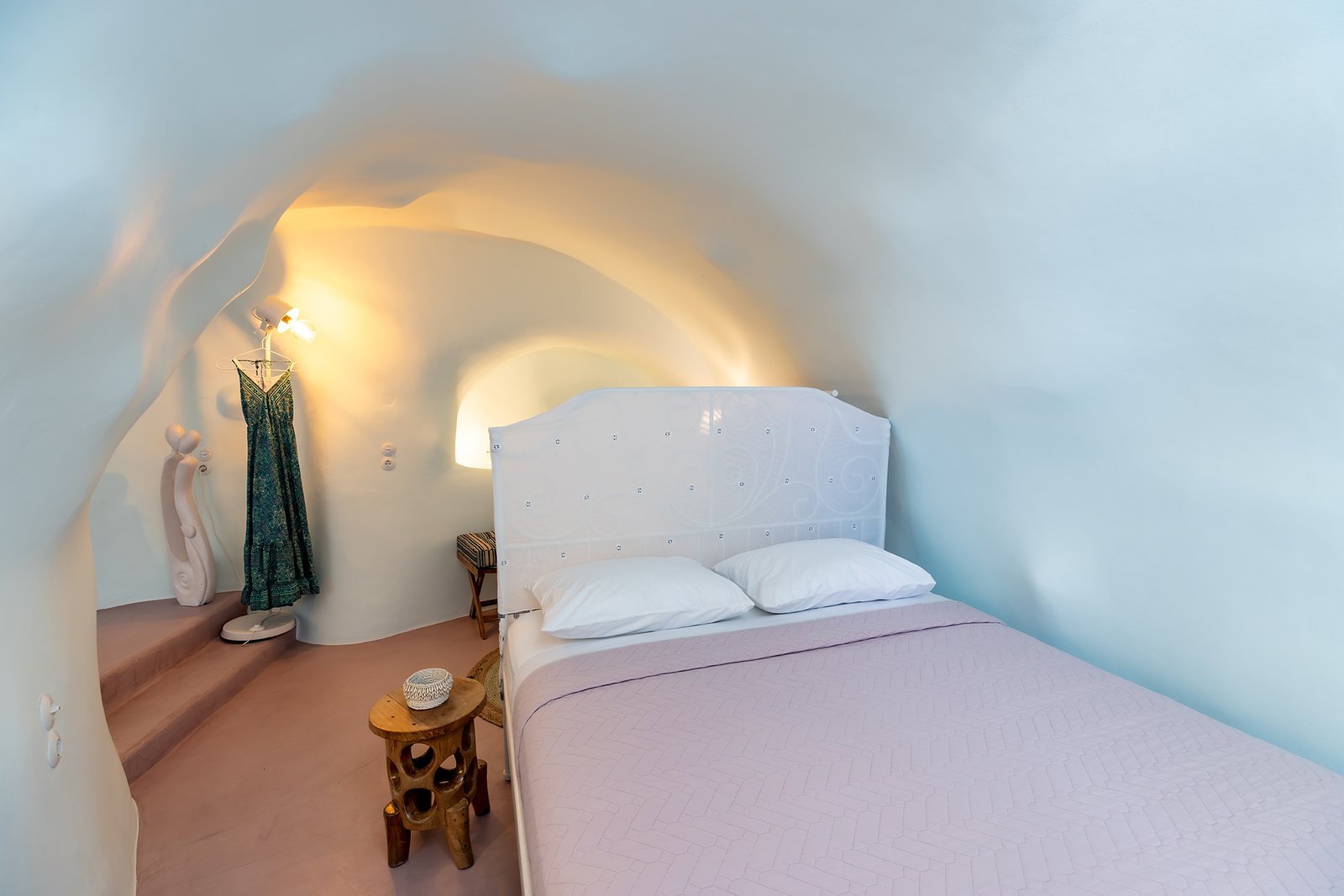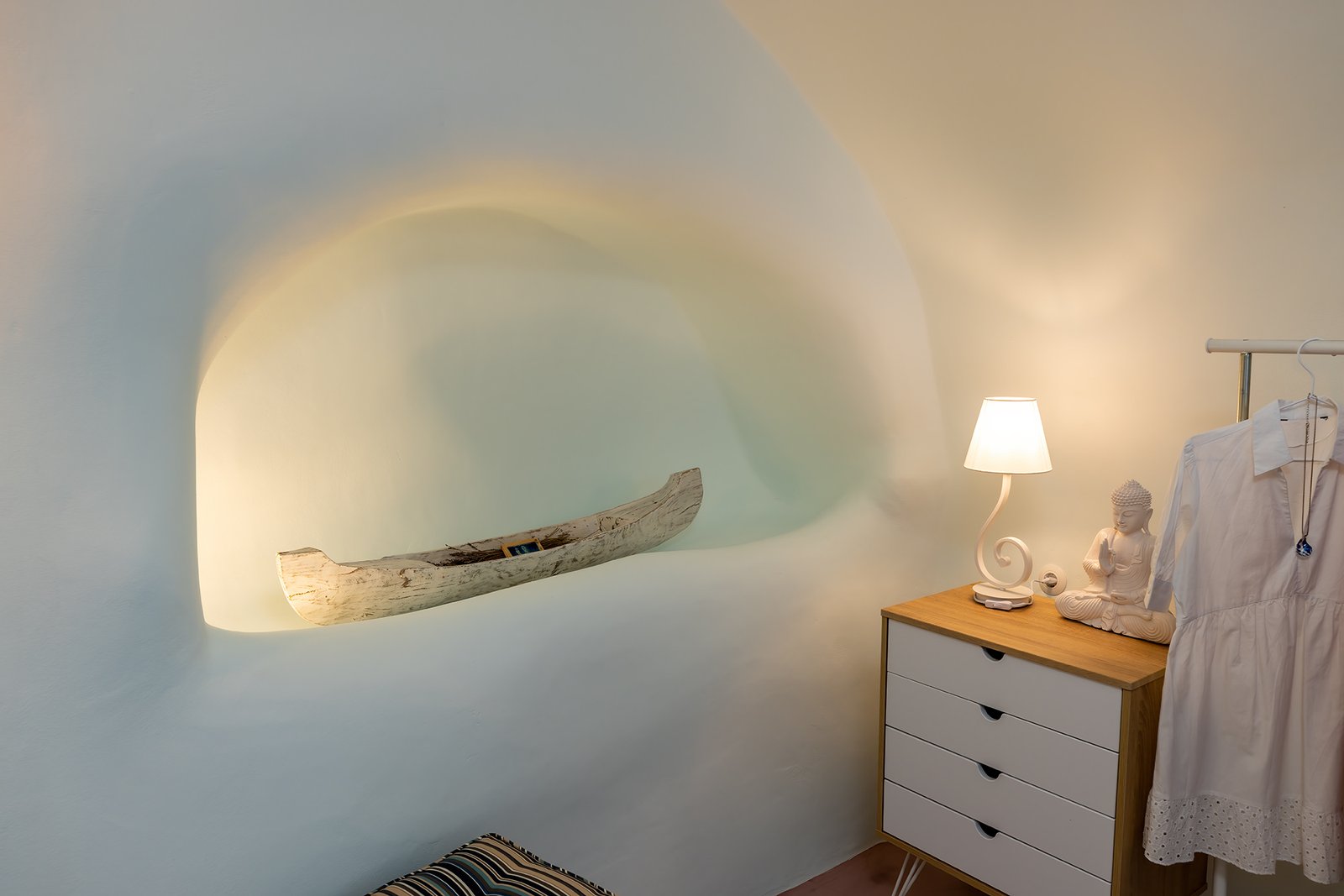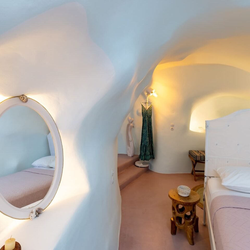In all the places of AMANITA CAVE VILLAS has used the traditional style of “patio” while all the spaces have been raised in the best way and all the rock cavities have been exploited creating natural decorative elements such as etazers, shelves and even separate – shallow wardrobe. The house is painted in light and pastel colors that illuminate the place. Another peculiarity of the shaft is its constant temperature throughout the year. So the house has inside the 18th C to 21st C which contributes to the pleasant stay and to the beautiful atmosphere.